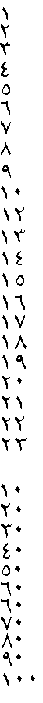 1 wahid 2 itnen 3 talata 4 arba a 5 hamsa 6 sitta 7 sab^a 8 tamanya 9 tis^a 10 asara 11 idasar 12 itnasar 13 talattasar 14 arba^tasar 15 hamstasar 16 sittasar 17 saba^tasar 18 taman^tasar 19 tisa^tasar 20 isrin 21 wachid we isrin 22 itnen we isrin 23 talata we isrin 10 asara 20 isrin 30 talatin 40 arbi^in 50 hamsin 60 sittin 70 sab^in 80 tamanin 90 tis in 100 myya |